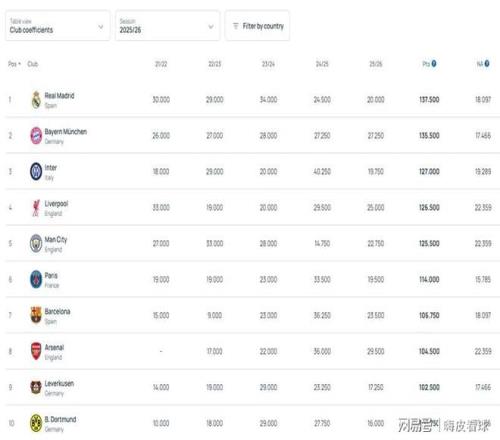 值得一提的是,俱乐部积分是按照最近5年的成绩合计来计算,下赛季开始后,就会移除2021/22赛季的分数,而那个赛季,国际米兰只有18分,减少得并不多,阿森纳由于没有参赛,只有0分,也就是不会减少。因此,在下赛季初,国际米兰或者阿森纳,很有可能成为欧洲排名第一的球队,这样的结果,符合大家的预期吗?